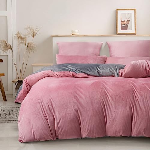 Gezu Rose Flanelle Chaude Hiver Unie Réversible Parure de Li...