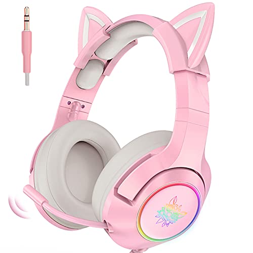 Casque Oreillette Chat Rose Microphone Détachables Son surro...
