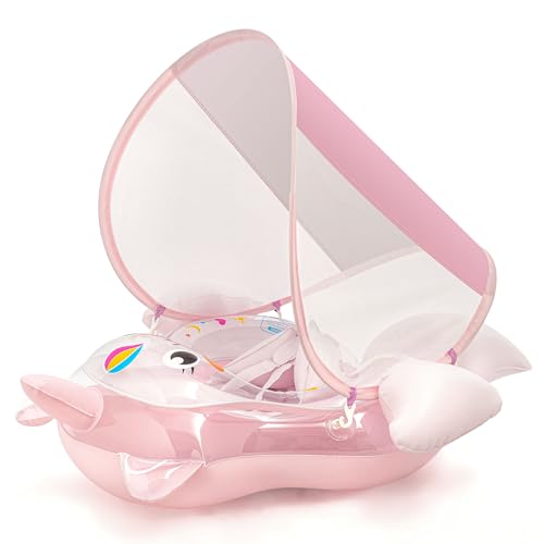 Bouée natation bébé 3-12 mois, gonflable pare-soleil rose