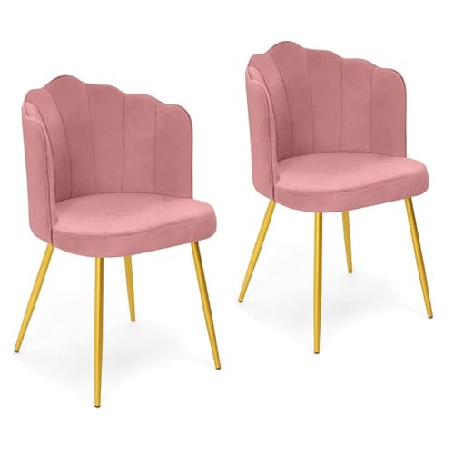 IDMarket - Lot 2 chaises Coquillage ADELLA Rose Velours Pied...