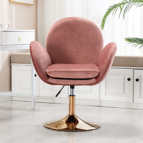 Chaise pivotante assise velours rose avec accoudoir pour coi...