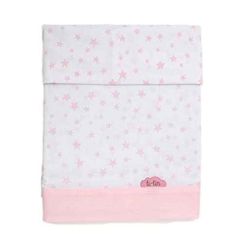 TIN Drap Housse 80x50 100% Coton Motif Étoile Blanc Rose