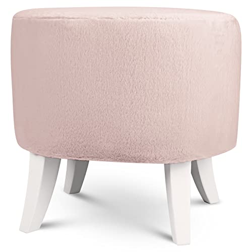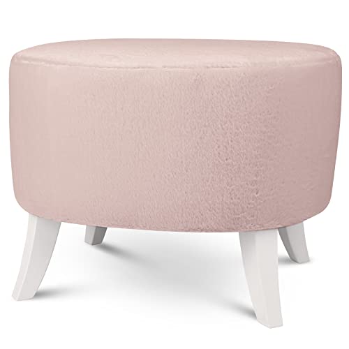 Pouf Ovale 42x52x45 cm Tissu Rose Fourrure Pieds Bois Blanc