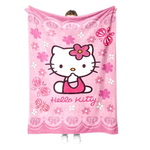 Plaid Enfant Kitty Rose 100x140 cm Laine Imprimé Dessin Anim...