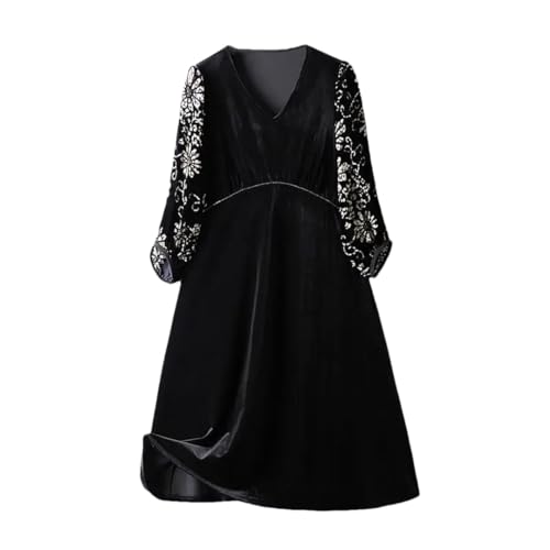 AMABILEMIA Robe Noire Transparente Florale à Manches Longues