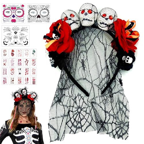 Giugio Los Muertos Serre-Tête Roses Tatouages Halloween