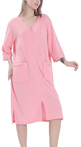 FEOYA Robe de Chambre Femme Fermeture Eclair Eté Peignoir de...