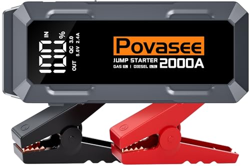 Pose Booster Batterie 2000A, Booster 3\" LCD, Deux Ports USB...