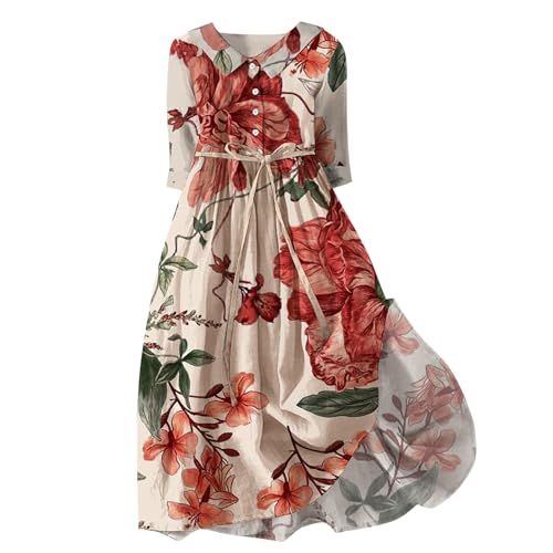 Robe floral décontractée pour femmes, longue manches, ample,...