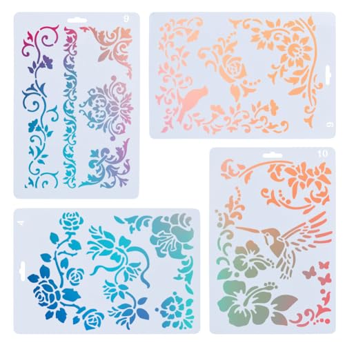 4 pochoirs à fleurs de rose : le paquet comprend 4 pochoirs...