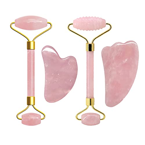 Grattoir à gouache rose, Rouleau de jade et quartz rose