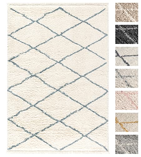 Shaggy Salon Crème Bleu Diamant Tapis Longs