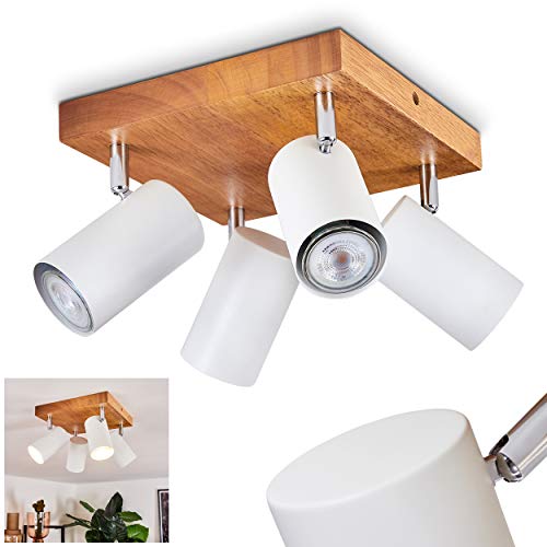 Plafonnier Zuoz bois métal, spots rotatifs GU10, salon conte...