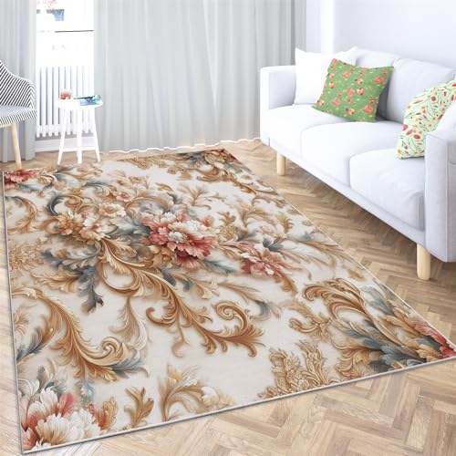 Tapis Rectangle Salon 180x240cm, Tapis Chambre Doré Doux, Ta...