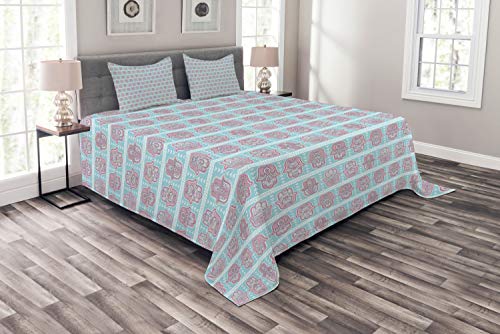 Oriental Couvre-Lit Multicolor Bleu pâle, Mehndi Mandala Lav...