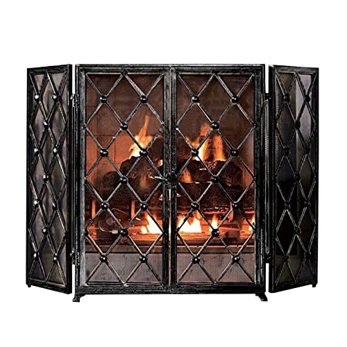 Écran cheminée Bois Noir, Maille fer rustique, Porte, écran...