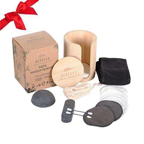 Kit démaquillant BENISAY : 10 tampons, 1 boîte bambou, 1 épo...