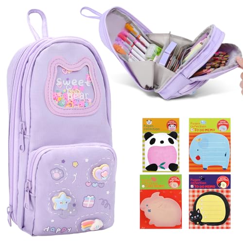 Trousse à crayons kawaii multifonctionnelle avec notes adhés...