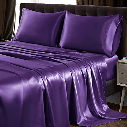 Drap en satin 100 \\\\% polyester : les draps en satin viole...