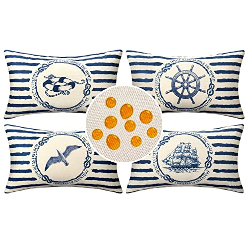 Lot de 4 Taies d'Oreiller 30 x 50 cm Décoratives Nautiques R...