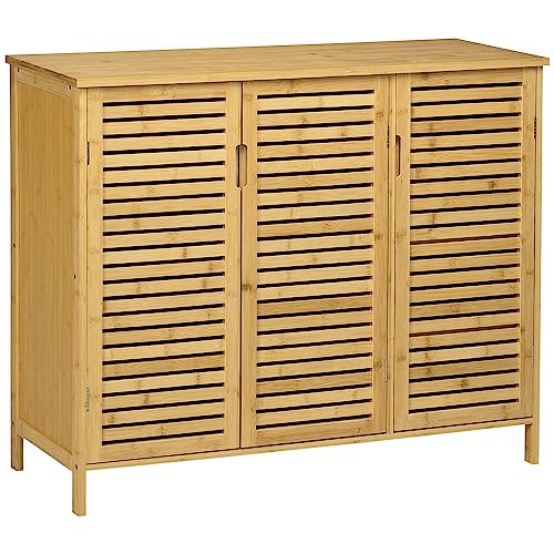 Naturel Armoire à Chaussures 3 Portes Bambou 100L