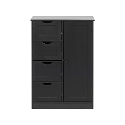 Armoire moderne noire, 1 porte 4 tiroirs, 82x56x30 cm