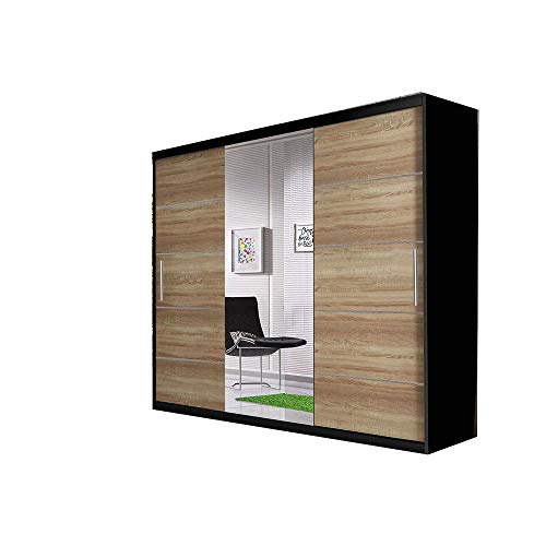 Armoire coulissante en bois chêne et noir avec 3 portes et p...