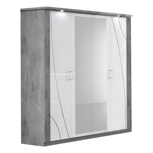 Armoire 4 Portes Laquée Blanc et Gris Béton Détails Chromés...