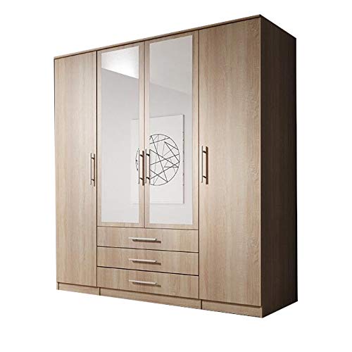 Armoire Chambre 4 Portes, Penderie avec étagères 200x210x64