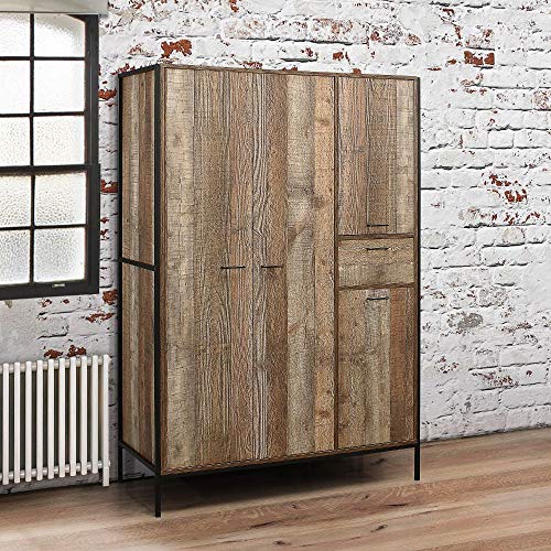 Armoire Beds 4 portes bois métal rustique 180 x 124 x 52 cm