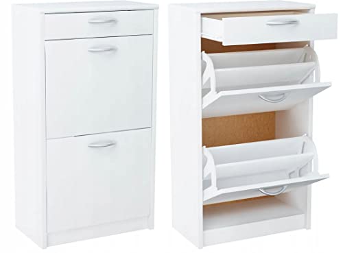 Armoire à chaussures basculante avec 2 portes et tiroir - Me...