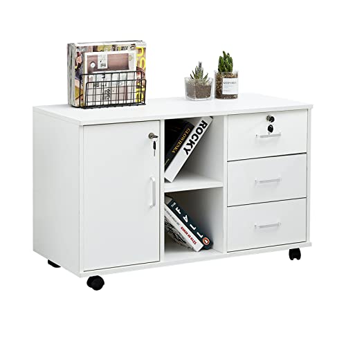 CLIPOP Armoire à 3 Tiroirs Mobile, Support Imprimante, Dossi...