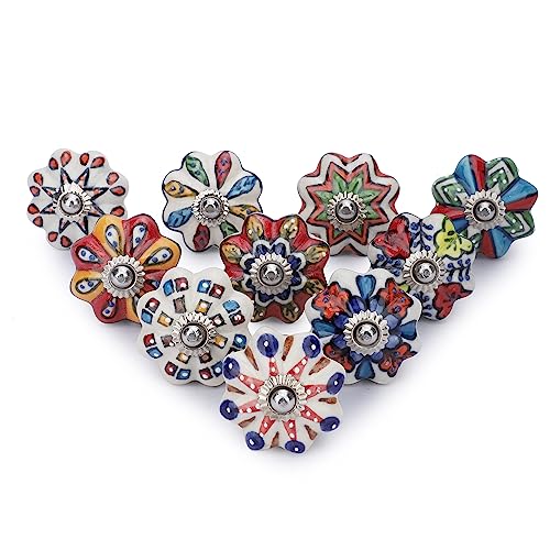 Ajuny 10 boutons & poignées céramiques colorés