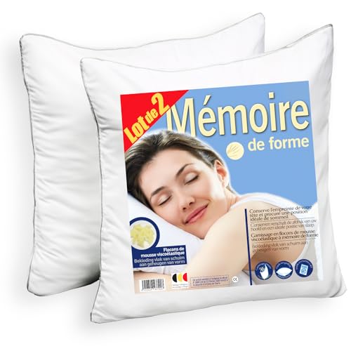 ✅ OREILLER MEMOIRE FORME 60X60 x2 VISCO 100\\\\% CONFORT (u...