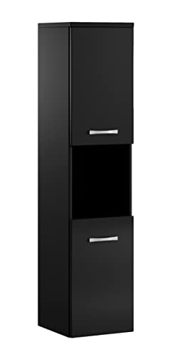Badpl. Armoire 131cm Noir Brillant Meuble Rangement Haut Pla...