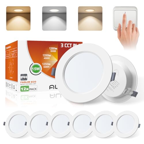 Spots LED encastrable 15W, IP44, 6500K-4000K, plafond encast...