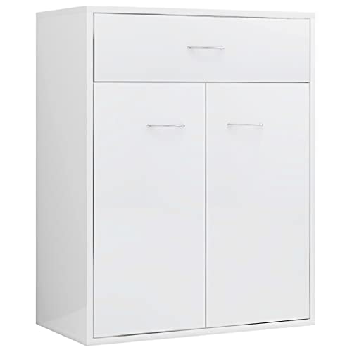 Vida XL Buffet Armoire Rangement Salon Chambre Blanc Brillan...