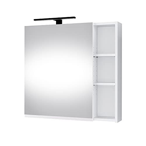 Armoire Toilette Moderne avec Lumière et Prise en Blanc