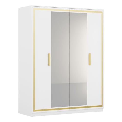Armoire 4 Portes Laquée Blanc et Décor Doré avec Miroirs de...