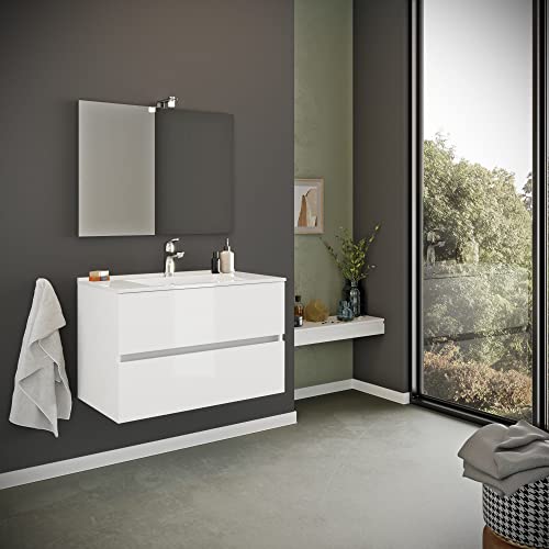 Kiamami Toilette Suspendue Blanc Armoire 80cm