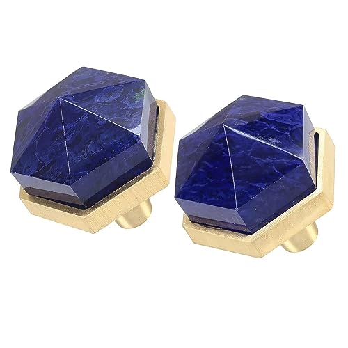 Ensemble de 2 boutons hexagonaux quartz bleu, tiroir poignée...