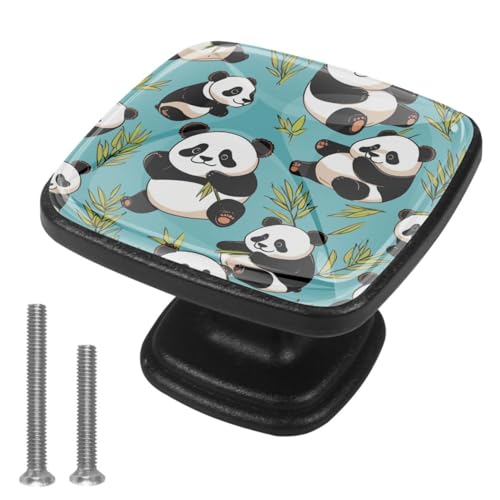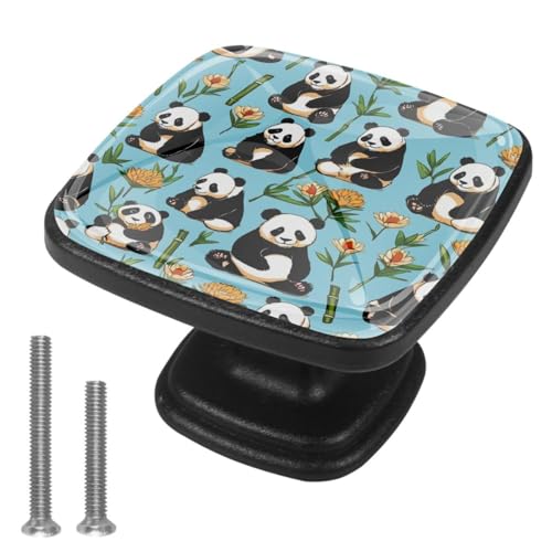 Lot de 4 boutons de placard noirs - Motif mignon panda sur f...