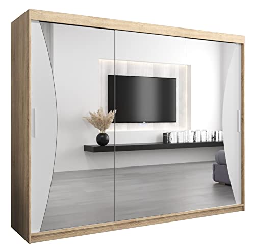 Monaire 250 Armoire Coulissante avec Miroir et Étagères - Mo...