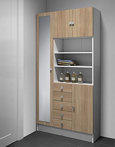 Kiamami Multifonctionnelle Armoire Blanc Chêne Porte Miroir...