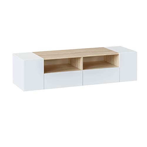 TAMIKO TV TAMIKO Meuble TV Blanc Chene Contemporain 138 x 42...