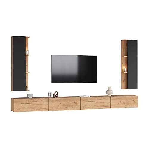 Mur de salon buffet 2 placards doré chêne/anthracite