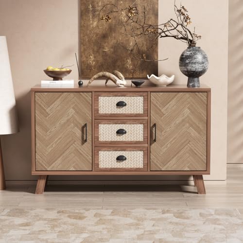 VSOGA Buffet à trois portes, porte en rotin texturé, étagère...