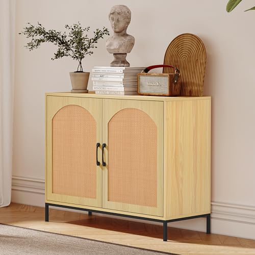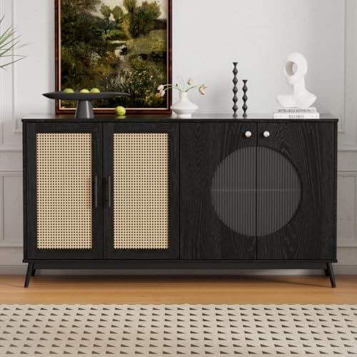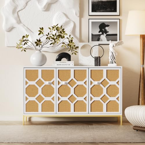YESGIGA Buffet à trois portes, porte en rotin structuré, ave...