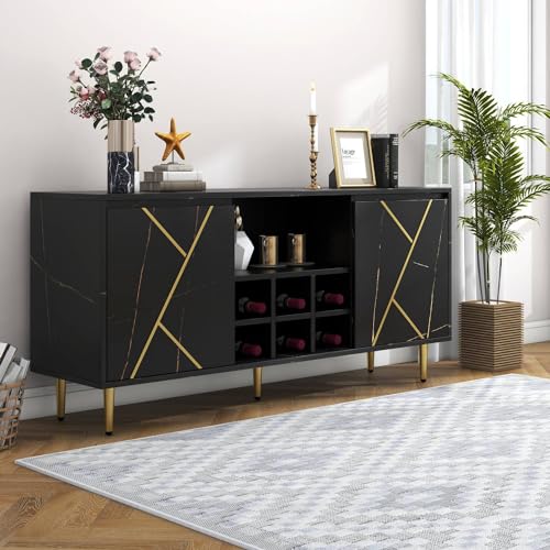 KOMHTOM Armoire multi-usages - Buffet noir avec portes en ve...