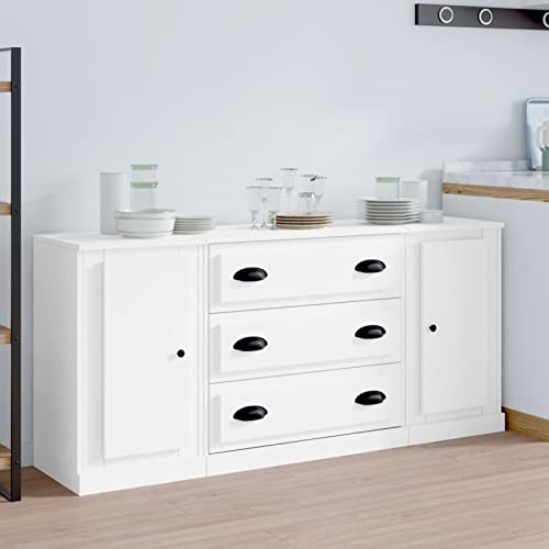 Homgoday Lot de 3 buffets en bois blanc - Armoire d''appoint...